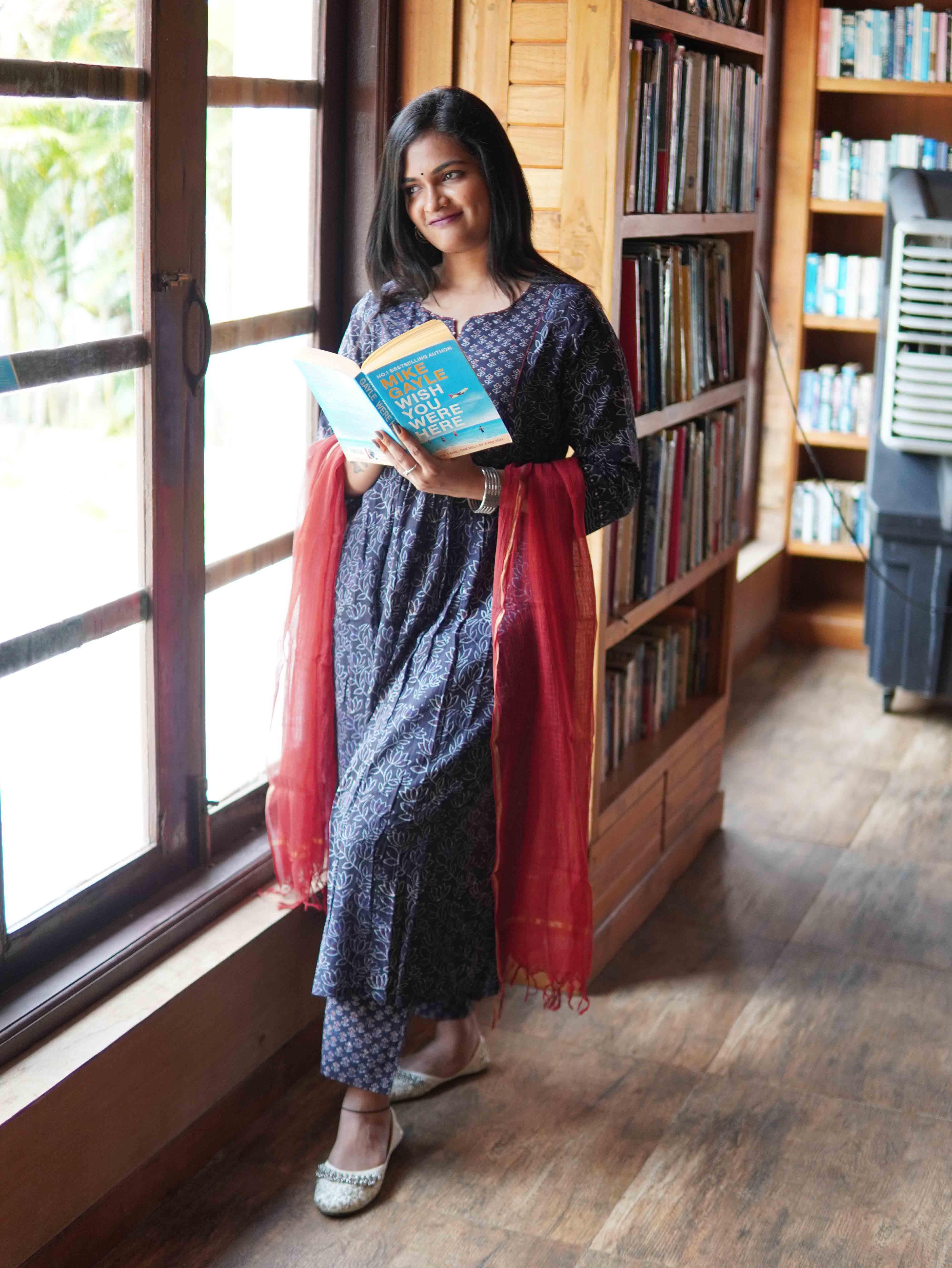 Ajrakh Lotus Soft Mul Cotton Cord Set - Black